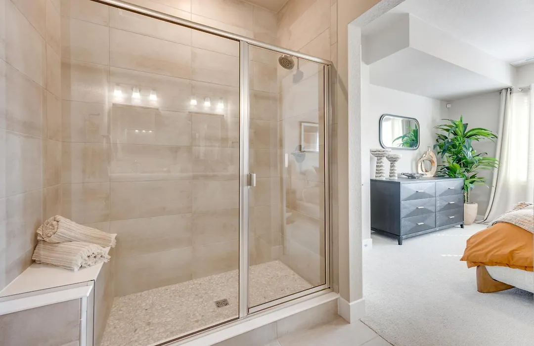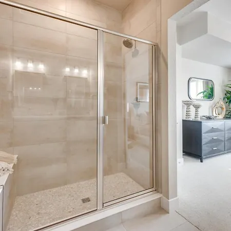 Elevated Home In North Colorado Springs With Patio includes a bathroom with a shower and a washing machine.